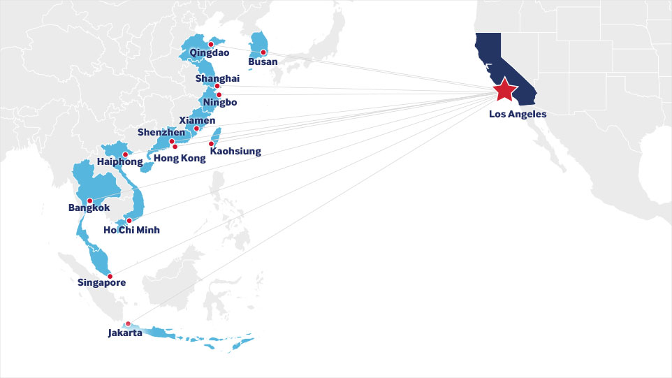 - China: Qingdao, Shanghai, Ningbo, Xiamen, Shenzhen, Hong Kong